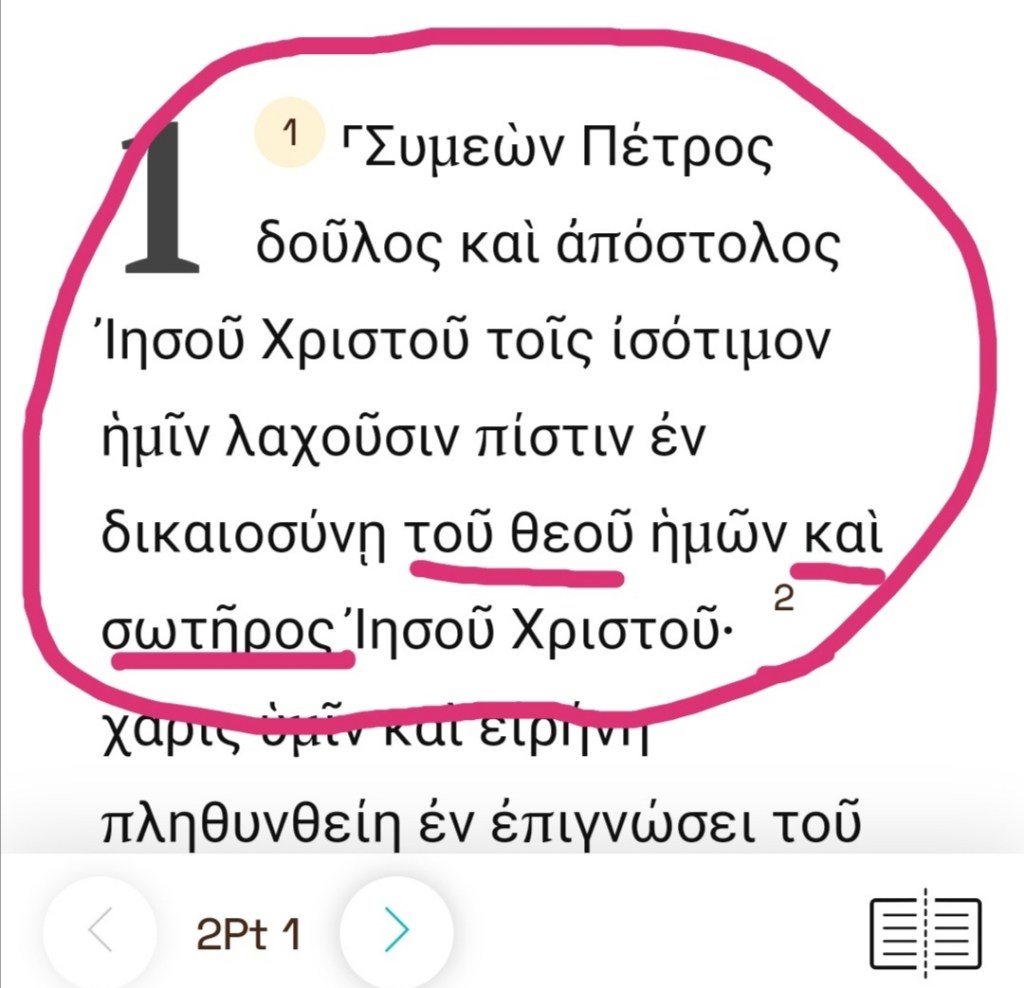 To deny the divinity of Jesus Christ, the anonymous authors of the New World Translation altered 2 Peter 1:1 by adding “the” in front of “Savior”. In fact, in the Greek text the article “tou”, that is “of” appears only once, before “theou” which means “God”. While no article appears in front of “sōtēros”.